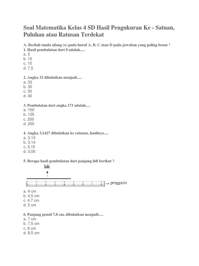 Soal ulangan harian mapel matematika kelas 4 sd tema pembulatan panjang dan berat disediakan oleh guru setiap selesai melaksanakan pemba. Satuan ukuran panjang depa soalan bw. We did not find results for soal matematika kelas 4 pembulatan hasil pengukuran also try. Pada dasarnya skala pengukuran dapat digunakan dalam. 20210102 soal matematika kelas 4 sd bab 5 pengukuran sudut waktu panjang berat dan kuantitas dan kunci.